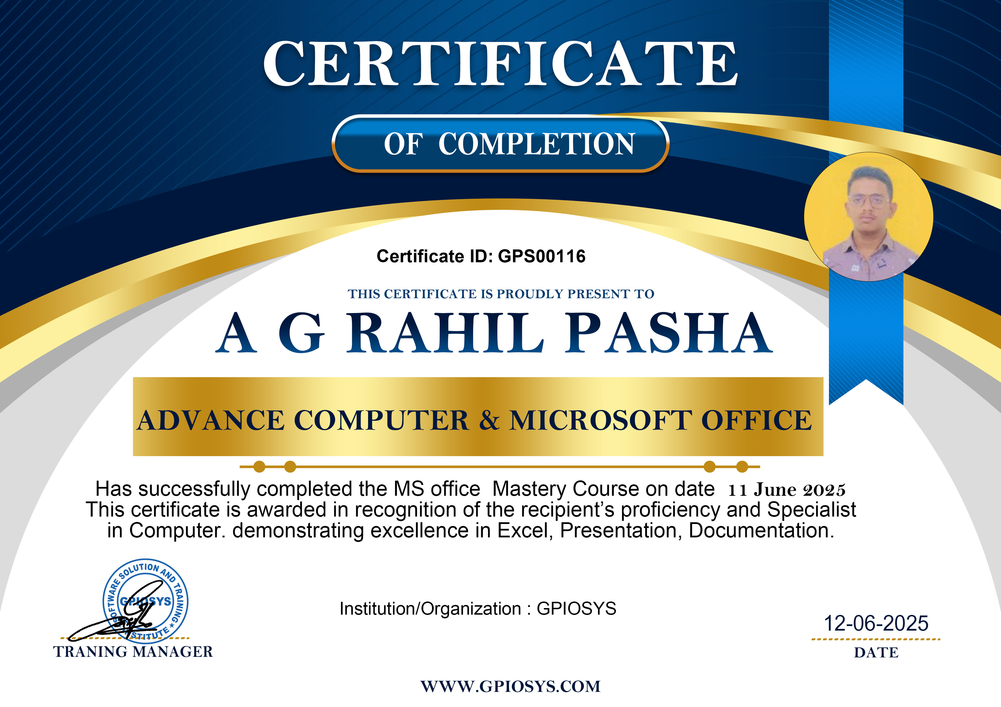 Gpiosys is GRAPHIC PROGRAMING INFRASTRUCTUTRE OPARATING SYSTEM Training and service company. commercial enterprise software design and training company, we have a well and expert trainers and programmers. We are providing best web solution, advance design, Network infra and software programs. The Gpiosys work with vendors and dealer and tech supporting companies.